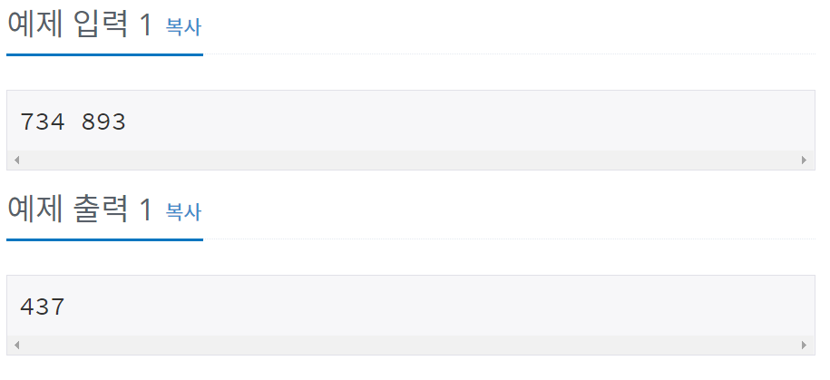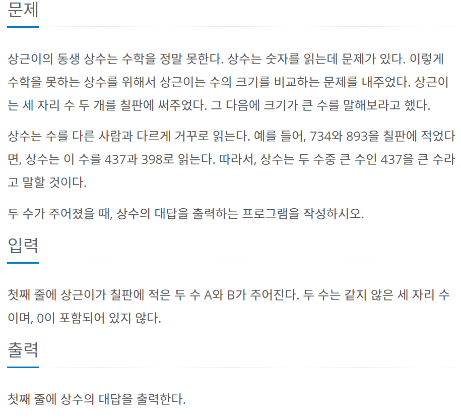 세자리 수를 두 개 입력하며 두 수를 뒤에서 부터 읽어 비교하여 큰 수를 출력해 준다.