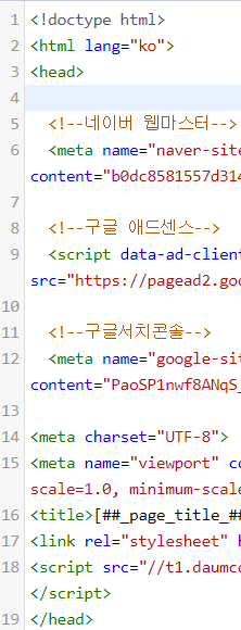 <head> </head> 태그 사이에 붙여 넣으면 된다. <!--네이버웹마스터--> 이거는 주석으로 구분하기 위해 넣은 것이다.