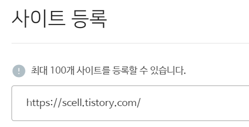 로그인을 하고 사이트 등록을 하는데 블로그 주소를 입력한다.