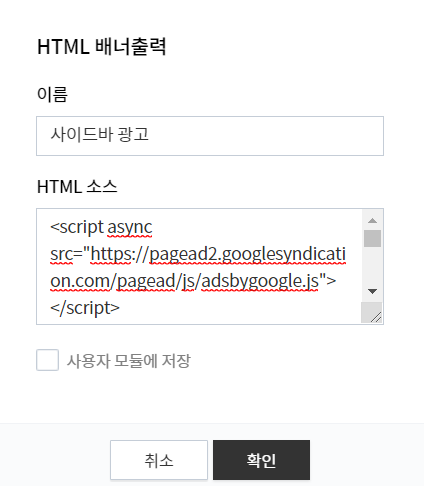 이제 블로그에 사이드바 생성하고 코드를 추가하면 된다.