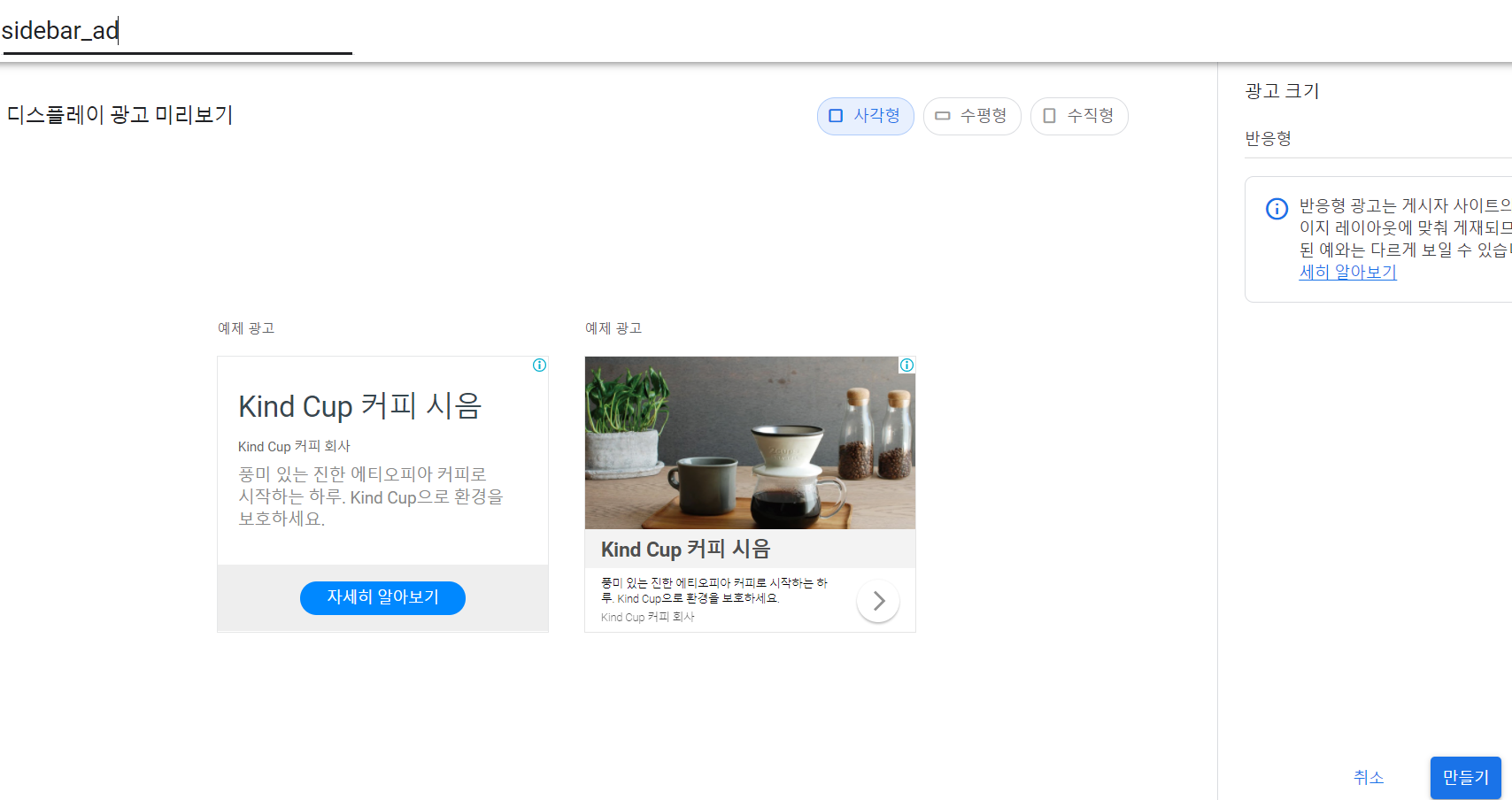 이름은 자신이 구분하기 좋게 아무렇게나 지으면 된다. 나는 sidebar_ad로 했다.